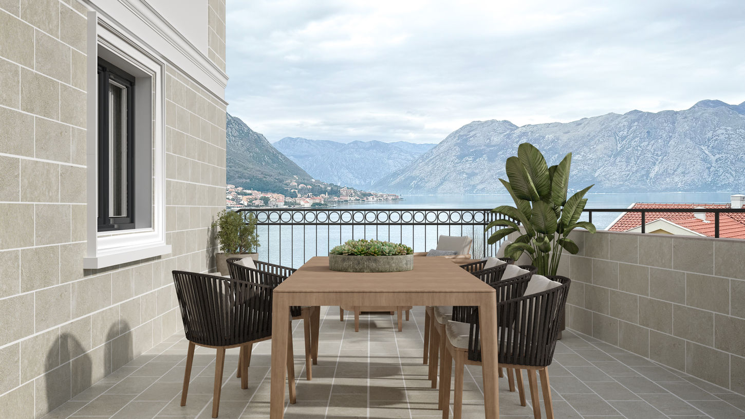 Stan u prizemlju s prostranom terasom i očaravajućim pogledom na zaliv nudi jedinstven spoj modernog dizajna i prirodne lepote. Velika terasa idealna je za opuštanje na otvorenom.